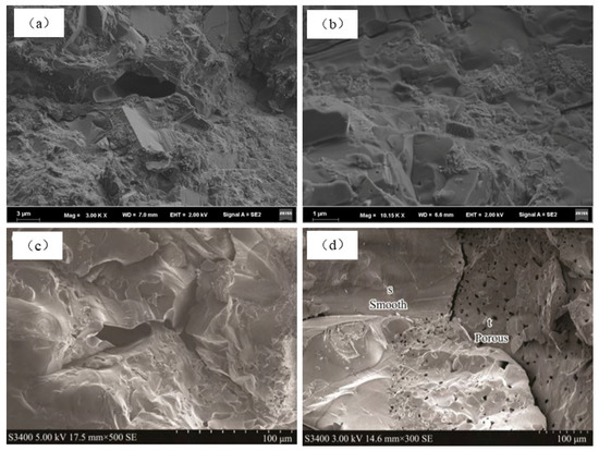 The surface morphology of ice-bearing cores and hydrate-bearing sediments: (a,b) ice-bearing samples; and (c,d) hydrate-bearing sediments.