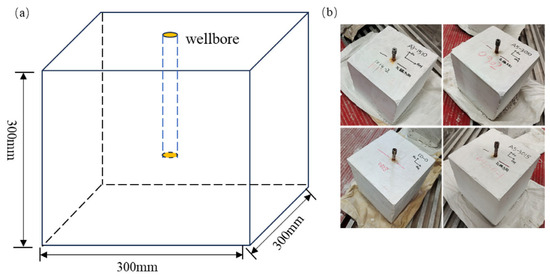 Based on the aforementioned methods, a total of 36 synthetic samples with varying saturations and dimensions of 300 mm × 300 mm × 300 mm were fabricated. Figure 3 illustrates the schematic diagram and physical appearance of the molded samples.