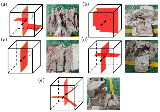 (ii) Stress loading: According to the experimental plan, set the loading pressure values for each principal direction. Simultaneously initiate all three pistons via the control cabinet to apply uniform loading at a rate of 0.1 MPa·s−1, until the desired stress state is reached;