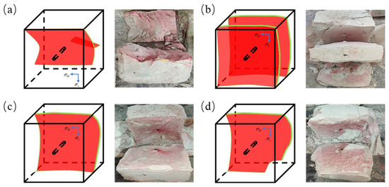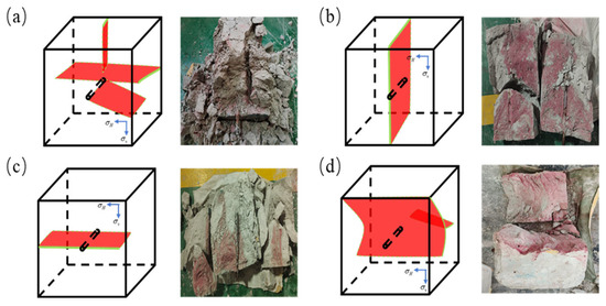 (iv) Post-fracture analysis: After fracturing, remove the sample and visually assess the dye distribution on the surface to preliminarily identify the fracture paths. The sample is then dissected to observe the internal fracture morphology, orientation, and propagation characteristics.