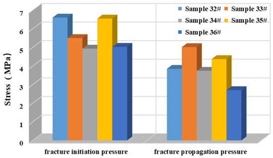 Figure 15 shows the injection pressure curves for samples with varying ice satura-tions under a fracturing fluid viscosity of 60.0 mPa·s. The pressure profiles reflect distinct responses influenced by ice content, indicating potential changes in fracture behavior. To further analyze these trends, Figure 16 illustrates the variation of fracture initiation and propagation pressures with increasing ice saturation. Notably, both pressures exhibit a trend of initially decreasing and then increasing, suggesting that ice saturation has a nonlinear but consistent influence on the fracturing process at this viscosity level.