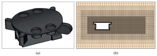 (a) Mesh generation of underwater AUV; (b) mesh generation of calculation region.