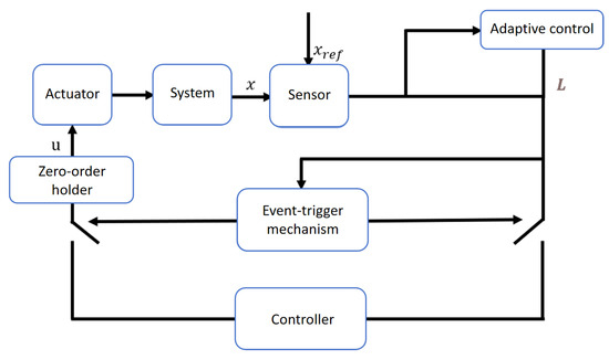 The proposed control strategy, based on an adaptive event-triggered mechanism, is illustrated in Figure 9. This strategy employs an independently designed event-triggering scheme that intelligently evaluates the system state to dynamically determine the communication schedule across the sensor–controller–actuator loop, significantly reducing redundant data transmission between components.