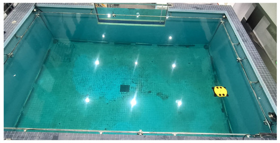 The underwater robot designed in this study utilizes four horizontal thrusters and four vertical thrusters. The horizontal thrusters are responsible for generating thrust for horizontal movement and enable horizontal maneuvers such as zero turning radius rotation through differential control. The vertical thrusters provide thrust in the vertical direction, which is used to maintain the robot’s attitude during hovering, ensure a stable angle of attack during horizontal motion, and offer driving force for small-range vertical movements.