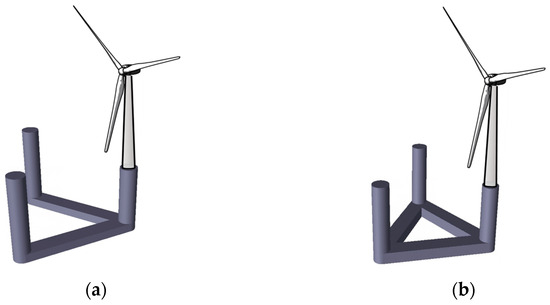 Diagram of FOWT models: (a) V-shaped concept, (b) NewSemi concept.