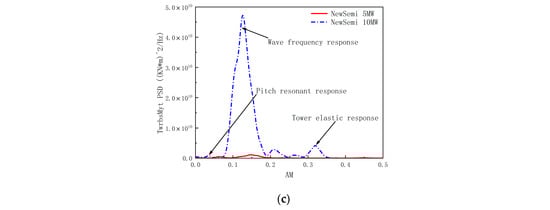 Since the optimization process in this paper focuses on the hydrodynamic performance of the floater under extreme sea conditions, the nonlinear wind load acting on the wind turbine is ignored. Assuming the response of the floater is linear, the response spectrum under a stationary sea state is presented below []: