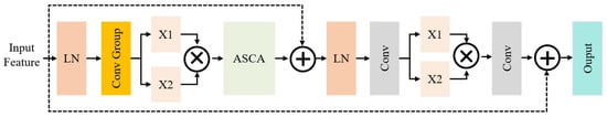 The Adaptive Spatial Channel Attention (ASCA) mechanism was introduced to accelerate the convergence speed of the model, mitigate the risk of overfitting, and stabilize the model. Building on the SCA attention mechanism, a batch normalization layer was added between two convolutional layers, speeding up the convergence of the model and reducing the overfitting risk. Additionally, extra convolutional layers and ReLU activation functions were incorporated to enhance the model’s nonlinear expressive capacity and aid in extracting more complex features. Figure 5 illustrates the ASCA mechanism.