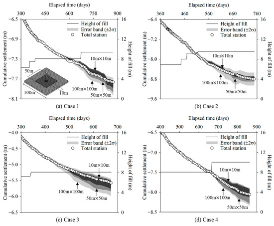 Previous studies have demonstrated that the observational methods are highly accurate in predicting settlement when an efficient amount of data are provided [18,19,20]. However, in large-scale sites, settlement plates are limitedly placed due to economic issues. This limitation allows only local settlement to be confirmed, which increases the possibility of problems, such as differential settlement.