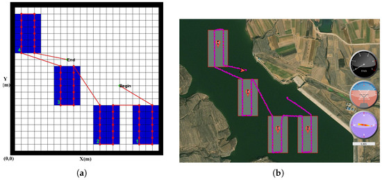 Diagram of trajectory limited by endurance. (a) Planning trajectory in the simulation. (b) Actual trajectory in the experiment.
