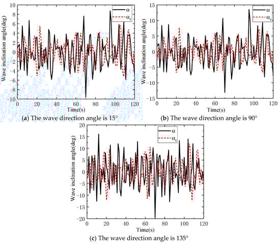 Changes in wave inclination angle under different wave direction angles.