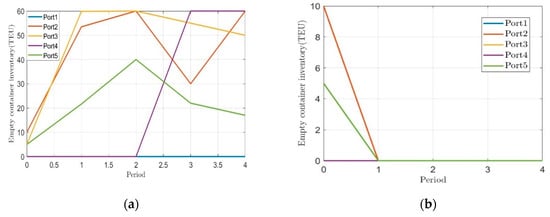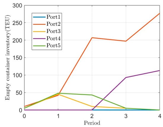 Figure 5 shows the evolution of empty container inventory in each port during different periods.