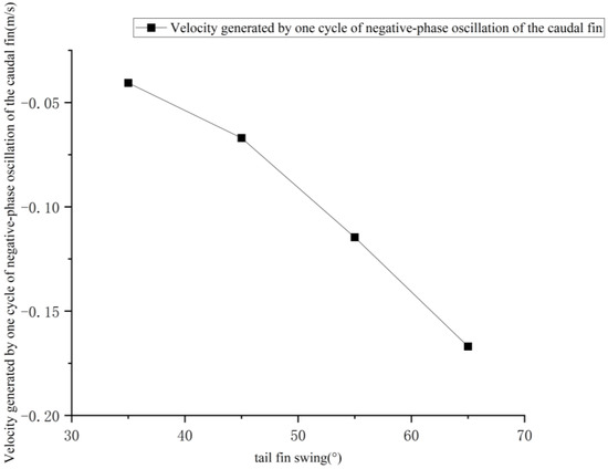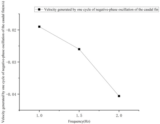 The velocity change curve generated by one cycle of negative phase oscillation of the tail fin at different frequencies is shown in Figure 17.