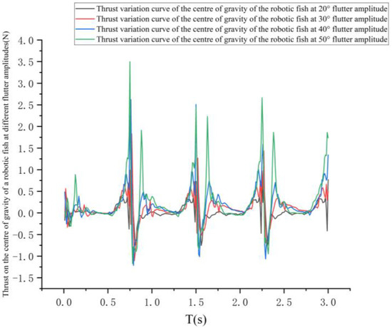 View of thrust change at the center of gravity of robotic fish under different flapping wing amplitudes.