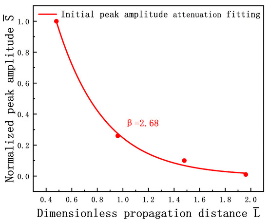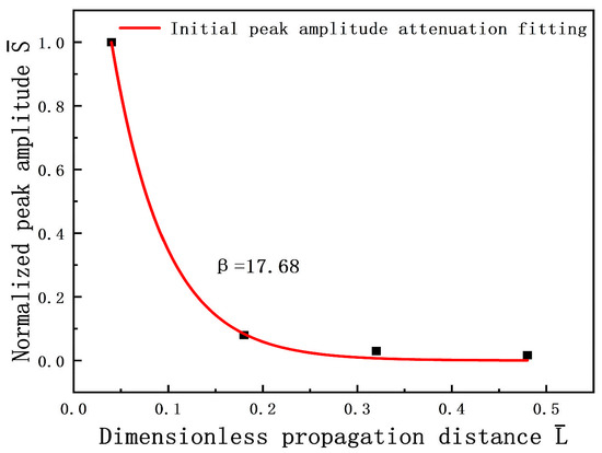 where A = 3.62 and β = 2.68. β is the attenuation factor that reflects the extent of shear wave attenuation; a larger β indicates greater attenuation of shear waves during propagation. Figure 5 shows the fitted curves of the initial wave attenuation at an excitation frequency of 20 kHz.