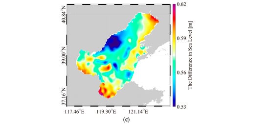 Since the early 20th century, global sea level has exhibited a gradual rise under the influence of climate change [,,]. This accelerated rise poses a significant threat to coastal regions, amplifying risks of storm surge [], flooding [], and large-scale socio-economic damage []. Sea level monitoring primarily relies on two approaches: remote sensing and in situ observations. Satellite-based technologies, such as radar altimeters [] and GPS-derived measurements [], enable rapid, large-scale assessments of sea surface height. Meanwhile, traditional methods—including shipborne surveys, moored buoys, and tide gauge stations—remain critical for providing high-resolution, localized data. Advances in oceanographic modeling and computational power have further enhanced our capacity to study sea level dynamics. Numerical models are now widely employed for hindcasting historical trends and predicting future scenarios, with sensitivity experiments proving particularly effective for isolating drivers of extreme sea states [,].