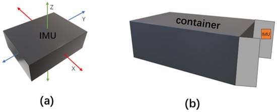 (a) IMU sensor that collects (X, Y, Z) axis acceleration data. (b) Where and how to install an IMU sensor on the door of the container.