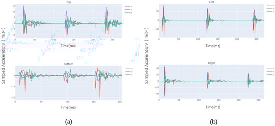 Raw acceleration data collected by IMU. (a) Sampling from the top and bottom; (b) sampling from the left and right.