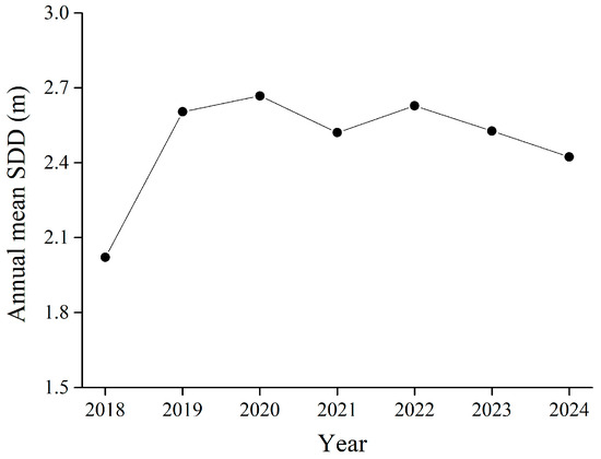 Annual mean SDD in the Qinhuangdao coastal waters (2018–2024).