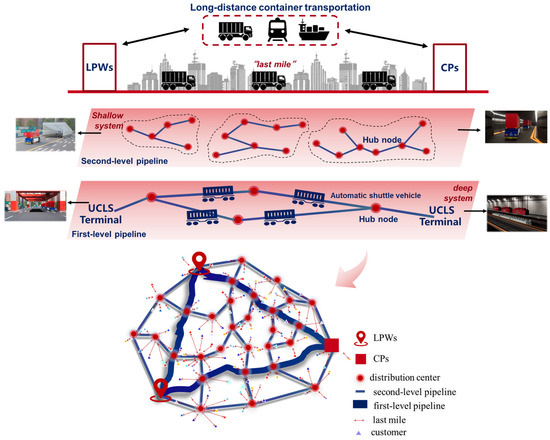 - Integration of new transportation modes: The underground container logistics system (UCLS) as a new transportation mode, presents a novel research topic regarding its coordinated optimization with traditional transportation modes. Determining how to effectively integrate the underground logistics system with traditional modes and allocate freight flow between them is an important focus of this study.