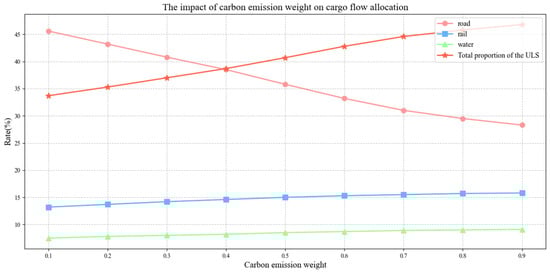 - Carbon emission weight: increasing the carbon emission cost weight is an effective way to promote the development of underground logistics systems. When the weight exceeds 0.3, the underground logistics system will become the dominant transportation mode.
