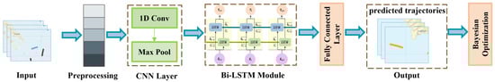 To optimize the hyperparameters of CNN-BiLSTM, we adopt Bayesian optimization, whose time complexity mainly comes from Gaussian process regression and the maximization of the acquisition function. The total complexity of Bayesian optimization is . The time complexity of the CNN part is . The complexity of the Bi-LSTM part is , which dominates the overall computational cost of the model. Future work can further reduce h through pruning to optimize efficiency.