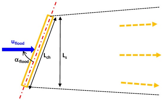 The cutter work is carried out in 100 days for a length of Lch = 3000 m. Hence, the daily cutter progress rate is 3000/100 = 30 m per day or 15 m per flood phase of 12 h. The effective length (Ls) normal to the flow direction is 15 × sin(αflood) = 15 × 0.7 = 10.5 m during flood. The basic spill data are as follows: Rspill = 3%; Pinsitu = 2500 m3/hour = 0.7 m3/s (cutter sediment production); ρdry,insitu = 1200 kg/m3. Using Equation (2), it follows that the spill production of the cutter-suction dredger (CSD) is Pspill = 1200 × (3/100) × 0.7 = 25 kg/s.