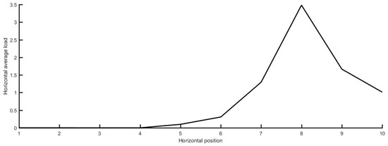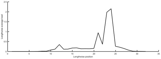 , represent the mean and maximum ice loads along the i-axis of the load matrix, respectively, the units of them are kPa (Figure 18). Temporal analysis of ice load data during contact events reveals that vertical ice load distributions predominantly concentrate near and below the ice waterline (Figure 19). Notably, high-pressure zones (HPZs) emerge not at the initial contact point but at positions offset downward along the hull’s molded depth, indicating concurrent ice sheet flexural failure and sliding displacement along the draft direction.