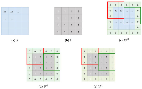 where W is the filter weight matrix; represents the scaling factor for valid regions in the convolutional window; denotes the zero padded result of the input feature ; and denote the one padded and zero padded result of , respectively. The visualization of the examples can be found in Figure 2. PConv dynamically adjusts convolutional weights by explicitly distinguishing valid data regions from padded areas, demonstrating robustness and adaptability.