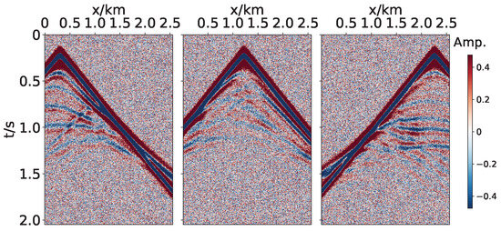 Three (the 3rd, 10th, and 18th) representatives of 20 shot gathers under Gaussian noise ().
