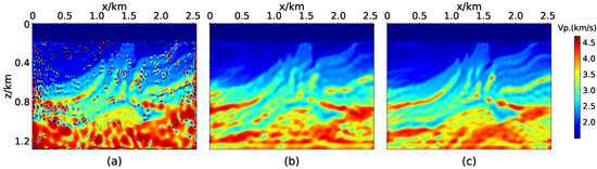 - Billette, F.; Brandsberg-Dahl, S. The 2004 BP velocity benchmark. In Proceedings of the 67th EAGE Conference & Exhibition, Madrid, Spain, 13–16 June 2005; European Association of Geoscientists & Engineers: Utrecht, The Netherlands, 2005; p. cp–1–00513. [Google Scholar]