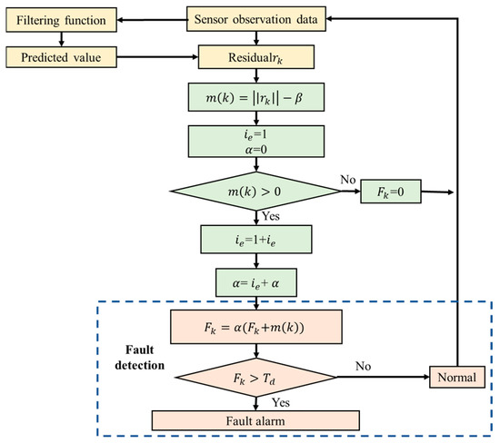 2]. Key challenges include the underwater environment’s complexity, real-time constraints, sensor failures, energy limitations, modeling uncertainties, low system adaptability, and a lack of historical data. Addressing these challenges requires fault detection algorithms that can identify various sensor faults accurately, operate in real time, and use minimal energy in unpredictable underwater conditions. Fault detection functions help identify faults in the navigation system and support timely corrective actions. Currently, three commonly used fault detection methods are as follows: