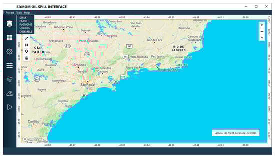 To support operational usability, a new user interface for the SISMOM oil modeling platform was developed based on the design and functionalities of the STFM system (FAPESP 2023/01542-3 and 2024/06927-3) [51,52,53]. This interface will (i) improve the setup features for both technical and decision-makers; (ii) streamline the configuration, execution, and visualization of oil spill scenarios; and (iii) enable reproducibility and consistency across simulation outputs (Figure 2).