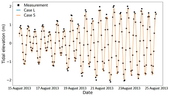 To address this limitation, tidal elevation and tidal stream velocity data calculated using a much larger computational domain from [30], in which the use of TPXO9-atlas data is appropriate, are adopted to define the boundary conditions. The simulation case presented in [30] is referred to as Case L, while the simulation case used in this study is referred to as Case S. A comparison of the simulation results from these two cases is provided in Section 4.2.