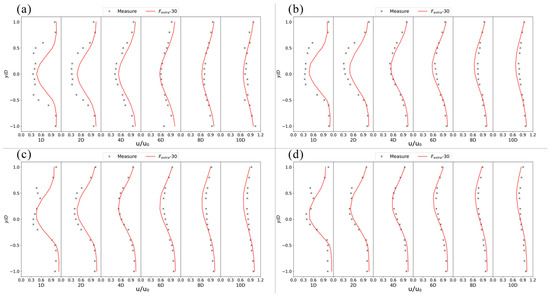 However, in the numerical model, it is more important to obtain the flow velocity through the turbine resistance distribution area, , when calculating the thrust force. For instance, in Thetis, the thrust force of the turbine is expressed as:
