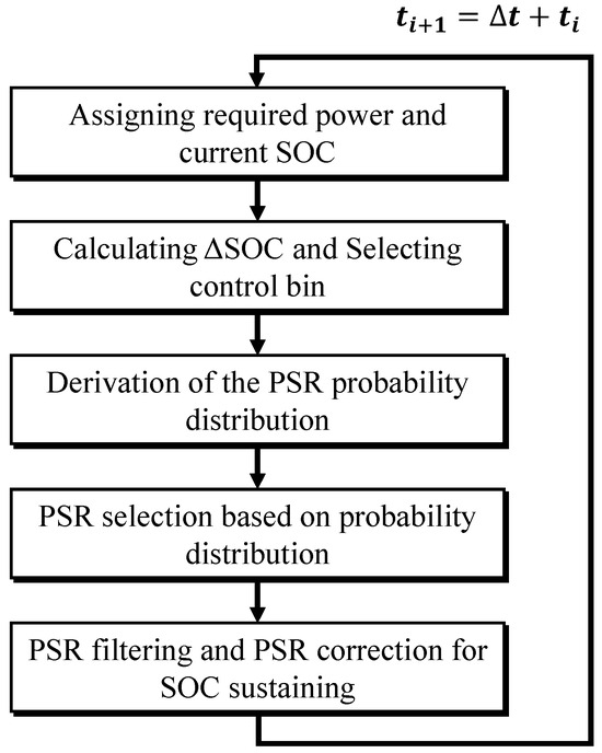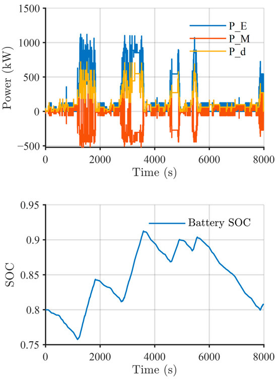 A potential drawback of the stochastic control strategy is its tendency to cause frequent power load fluctuations. To address this, a memory factor was added to prevent frequent power load fluctuations. In addition, the SOC correction factor was applied to satisfy the battery SOC recovery requirement at the end of the operation. The SOC correction factor can be selected by the user according to the requirements at the end of the operation, rather than proposing a fixed optimal value.