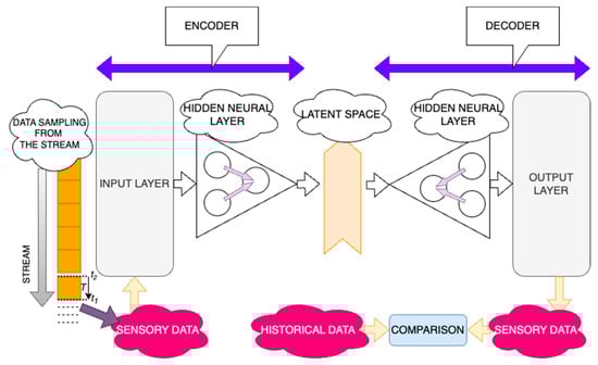 Overall, the adoption of novel techniques for damage detection and fault diagnosis in physical systems has been demonstrated by numerous research groups in the engineering field [,]. In many cases, autoencoders are generally used to predict specific patterns. In contrast, Lv et al. [] addressed the problem of link prediction in dynamic (temporal) networks using temporal link prediction approaches, specifically non-negative matrix factorisation (NMF). As a result, they proposed two new deep autoencoder-like NMF models with graph-regularised prediction methods for dynamic networks. Sarikaya et al. [] analysed machine learning-based intrusion detection systems (IDSs) by estimating the accuracy of their classification results. The authors developed a method that employs generative adversarial networks to produce adversarial attack data and propose a novel RAIDS solution—a robust IDS model designed to be resilient against adversarial attacks in general, utilising the autoencoder’s reconstruction error technique as a prediction value for the classifiers within the estimation metrics. Such direct applications suggest that autoencoders can be used as efficient, supportive tools in combination with more complex techniques [,,,]. Yet, each case study is unique when higher-order data sets are examined [,], which is the primary issue when simplified solutions are applied in large-scale applications, as no unified solution exists []. No unified neural network structure exists for the encoder and decoder that can be adopted without any serious modifications [,]. Encoder input datasets require refinement, cleaning, and structuring for each specific application [,]. Even if similar conditions occur, the same application in different work environments can yield inadequate results [,]. This was also highlighted by Danti and Innocenti [], which strongly supports our claim. They examined this problem and proposed a quality procedure to determine the optimal training set size to minimise the reconstruction error of an autoencoder with predefined structures and hyperparameters that will be trained to encode the expected behaviour of a complex energy generation system.