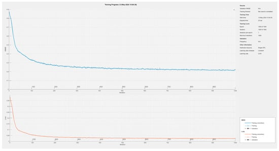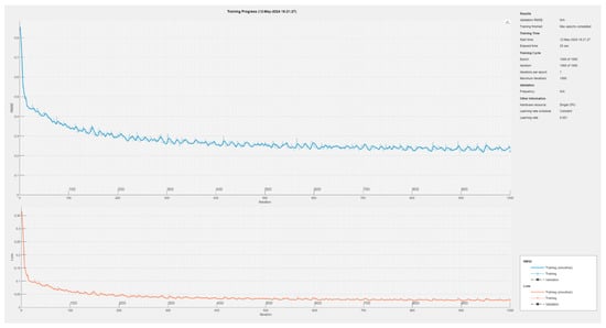 In contrast, the Temporal Convolutional Autoencoder (TCAE) framework shows a slight overlap between normal and anomaly loss distributions, which may increase the likelihood of missed impact events (false negatives). The superior performance of the RAE in distinguishing between normal and impact conditions supports its practical applicability for real-time impact monitoring in port operations. Comparative analysis of the RMSE curves, as well as the loss function during the training period, shows that the RAE performs sufficiently better under the experimental conditions of 1000 computing iterations (see Figure 13 and Figure 14), indicating that the number of iterations may be diminished up to 300, thus lowering the computational strain on the edge device and increasing the response time of the system.