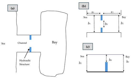 Figure 2 shows a communication channel between the sea and the bay, featuring horizontal and vertical constrictions (which could be a bridge or another structure).