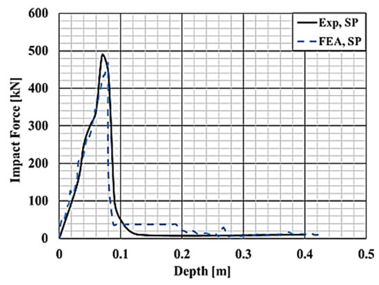 Figure 4 that the global trends of the FE model and the experimental one are similar, while the peak of the impact force resulting from the FE model is less than that of the experiment by 4.69%, with lag of occurrence. This peak lag, in addition to the higher penetration depth of the FE model, results in higher absorbed energy than the experiment by 10.09%, as shown in