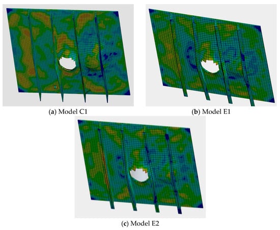 Figure 9. For model (D1), there are four stiffeners, which is the same as for model (A), see