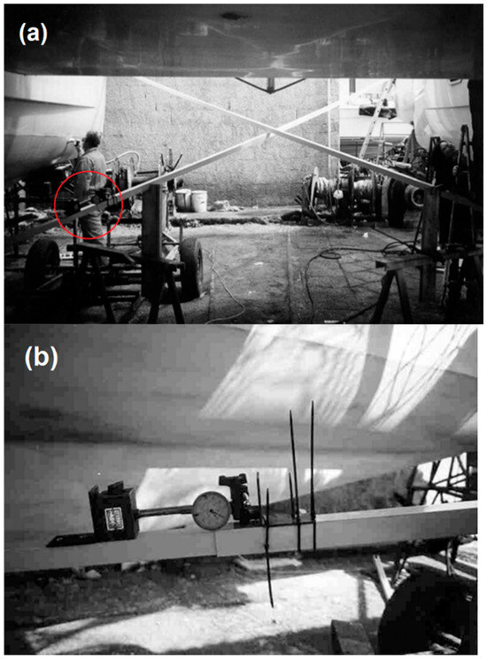 The telescopic beams, specially designed as both a displacement-sensitive element as well as a support for the comparators (Figure 10b), were made of aluminum to avoid affecting the relative displacements between the boat hulls, thereby minimizing the instrumental insertion error.