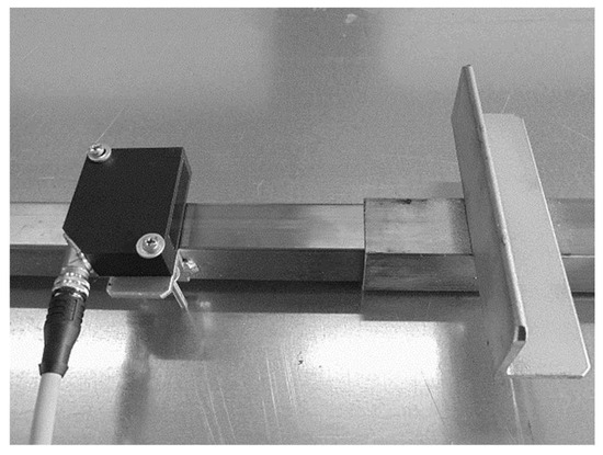 Each laser displacement sensor (Micro-Epsilon OptoNCDT 1302-200, Ortenburg, Germany) was also fixed to the internal coaxial element of an aluminum telescopic rod. An L-profile was positioned on the rod, acting as a target for the laser beam, to detect the movements of the rod due to the deformations undergone by the hulls of the catamaran (Figure 11). Laser sensors have a range of 60 ± 260 mm, an accuracy of ±0.2%, and a spot diameter of 2.3–2.1 mm.