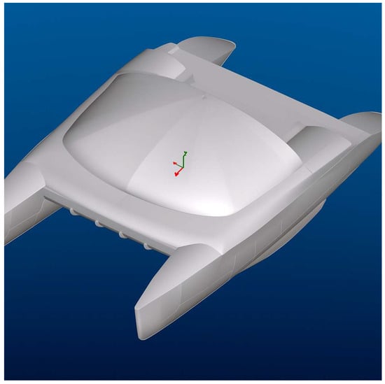 Previous studies on slamming in sailing vessels have mainly focused on monohulls [20,21,22], emphasizing the need for motion-based prediction tools. Strip theory, initially introduced by Korvin-Kroukovsky and Jacobs [23] and refined over the decades [24,25], remains a cornerstone for estimating ship motions and predicting slamming risk. However, lightweight sailing catamarans are particularly sensitive to pitching, which can compromise both navigational safety and sail performance. Grande (2002) [26] proposed a dedicated strip-theory model tailored to catamaran slamming, while other approaches have incorporated Fluid–Structure Interaction (FSI) simulations of wedge-like structures in free-fall water entry scenarios [27].