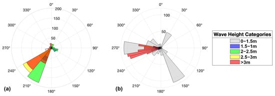 Wave rose diagram at accident time: (a) swell; (b) windsea.