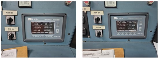 There are three measurements for each of the six cylinders in both engines at three different loads (22.95%, 36.08%, and 54.14% for the port engine and 22.28%, 35.46%, and 51.97% for the starboard engine). In addition to this, it contains information on the indicated pressure (bar) and maximum pressure in the cylinder (bar), the compression pressure in each cylinder (bar), the ratio of compression and scavenging pressure, engine speed (rpm), the effective pressure in each cylinder (bar), the indicated power (kW), the effective power (kW), mechanical losses (kW), mechanical efficiency (%), the fuel consumption of the whole engine (kg/h), the indicated efficiency of the whole engine (%), the effective efficiency of the whole engine, and the specific effective fuel consumption (g/kWh). Neither dataset contains any significant outliers or other aberrations, and no data is missing. The parameters were collected from a built-in terminal in the vessel’s operating room, as shown in