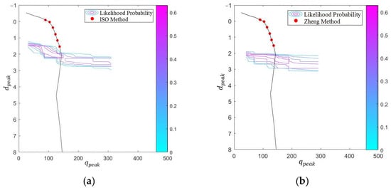 Contour of the likelihood probability: (a) ISO-recommended method; (b) Zheng method.