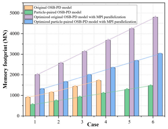 Wang et al. [109] proposed a particle-paired algorithm and its optimized version, and achieved significant improvements in computational efficiency and memory usage through MPI parallelization. Figure 16 intuitively shows the memory footprint changes in different models as the number of particles increases, directly reflecting the advantage of the optimized particle-paired algorithm in memory usage.