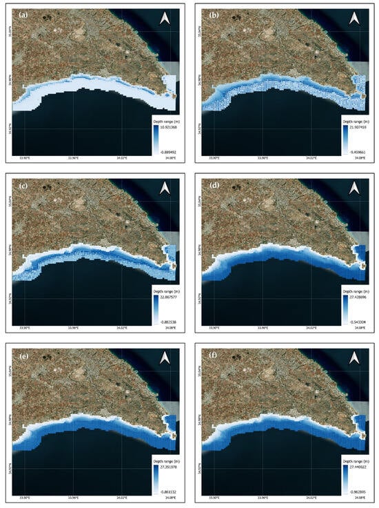 - Site-specific training: A model was trained and evaluated exclusively on the Agia Napa dataset. This scenario assessed the upper bound of model performance achievable when both training and testing occur within the same geographic area, serving as a performance benchmark.