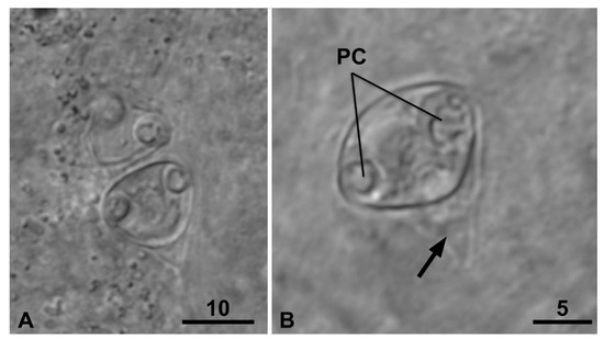 - Eszterbauer, E.; Atkinson, S.; Diamant, A.; Morris, D.; El-Matbouli, M.; Hartikainen, H. Myxozoan life cycles: Practical approaches and insights. In Myxozoan Evolution, Ecology and Development; Okamura, B., Gruhl, A., Bartholomew, J.L., Eds.; Springer International Publishing: Cham, Switzerland, 2015; pp. 175–198. [Google Scholar]