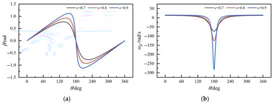 Self-rotation angle and angular velocity of the VSP blades under different eccentricities: (a) β and (b) .